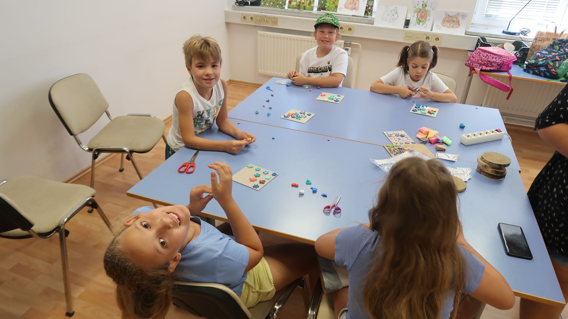 Zjutraj pred zajtrkom se otroci prosto igrajo. Dopoldnevi med 9.00 in 12.00 uro so namenjeni delavnicam (4 šolske ure dnevno, okviren urnik spodaj).