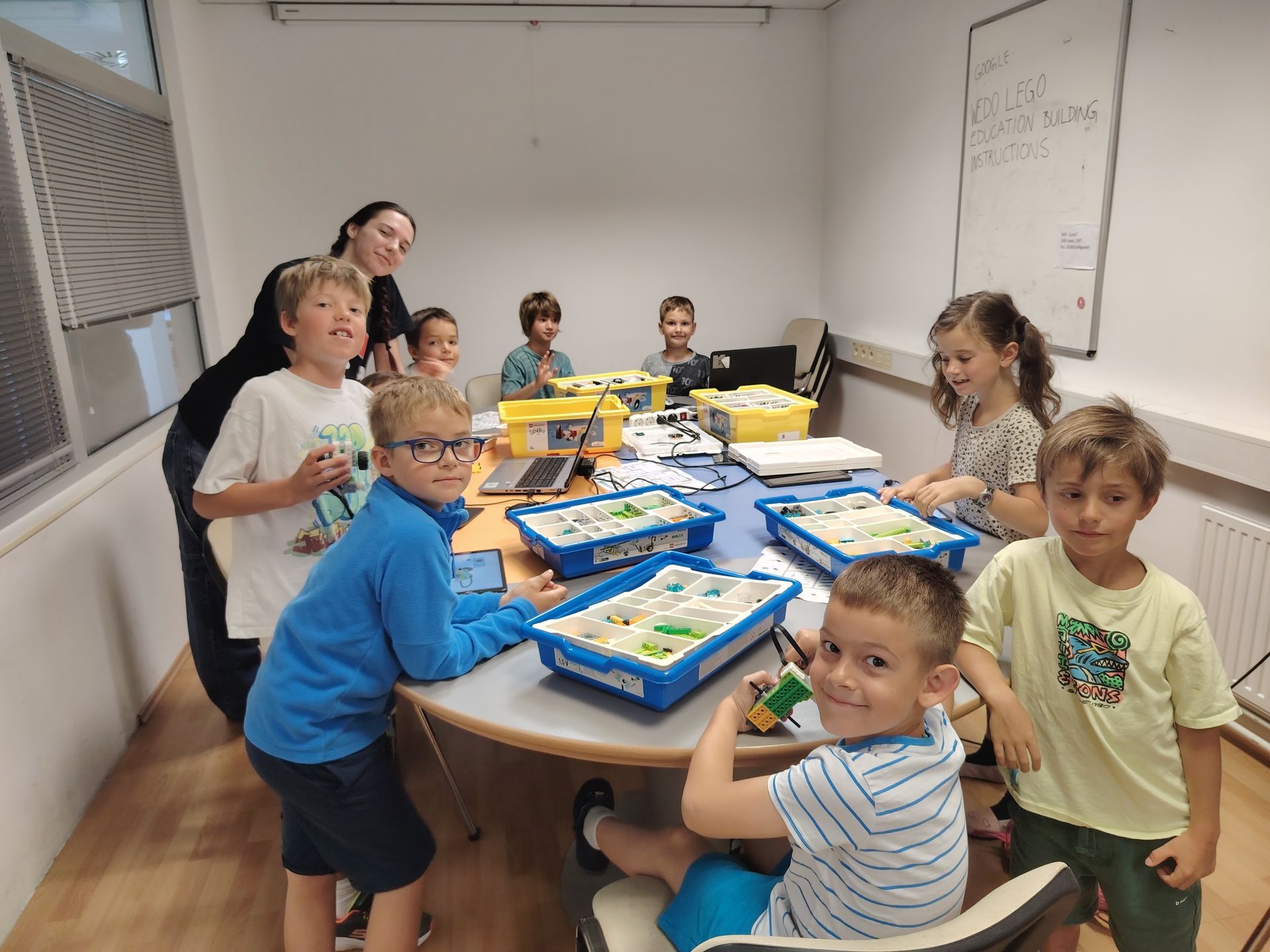 Najmlajši otroci bodo spoznavali zakone fizike in delovanje mehanskih naprav. Ker vedno delamo v parih, otroci tekom tečaja krepijo tudi svoje socialne veščine, pri sestavljanju in iskanju kock pa se pasivno učijo še štetja in krepijo svoje motorične sposobnosti. Preko sestavljanja simpatičnih robotov bodo spoznali pojme kot so škripec, vzvod, in zobnik. S pomočjo motorjev bodo naši roboti oživeli in se premikali.